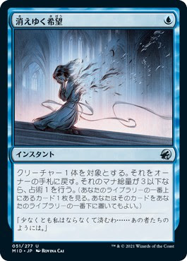 様々なデッキで使われている優秀なバウンス。このデッキもドロー補助・マナ補助が乏しいので、占術1が染みる場面は多い。